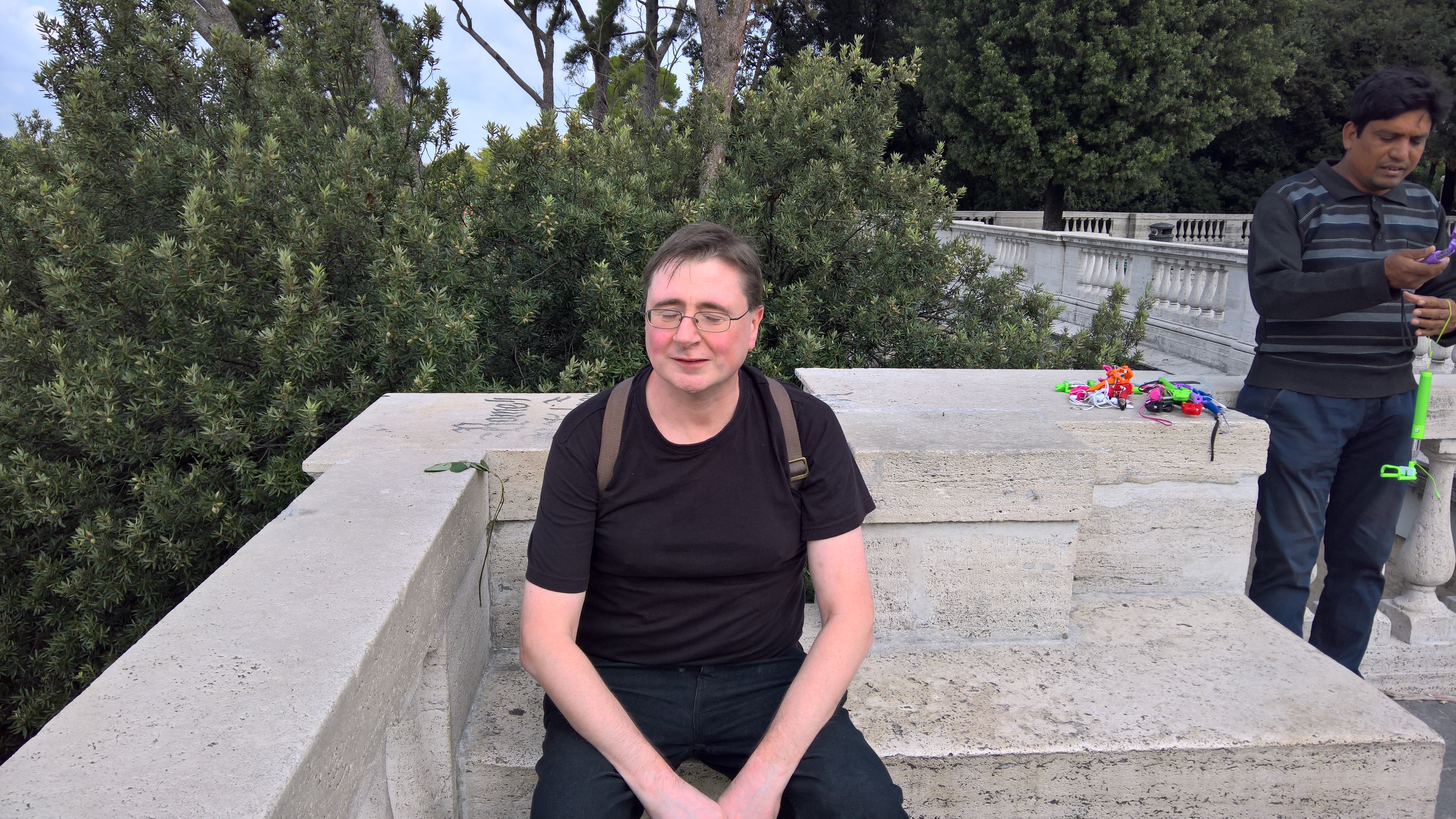 Then we walked the long way to Villa Borghese. Here is J looking exhausted after climbing hundreds of steps (good view though).