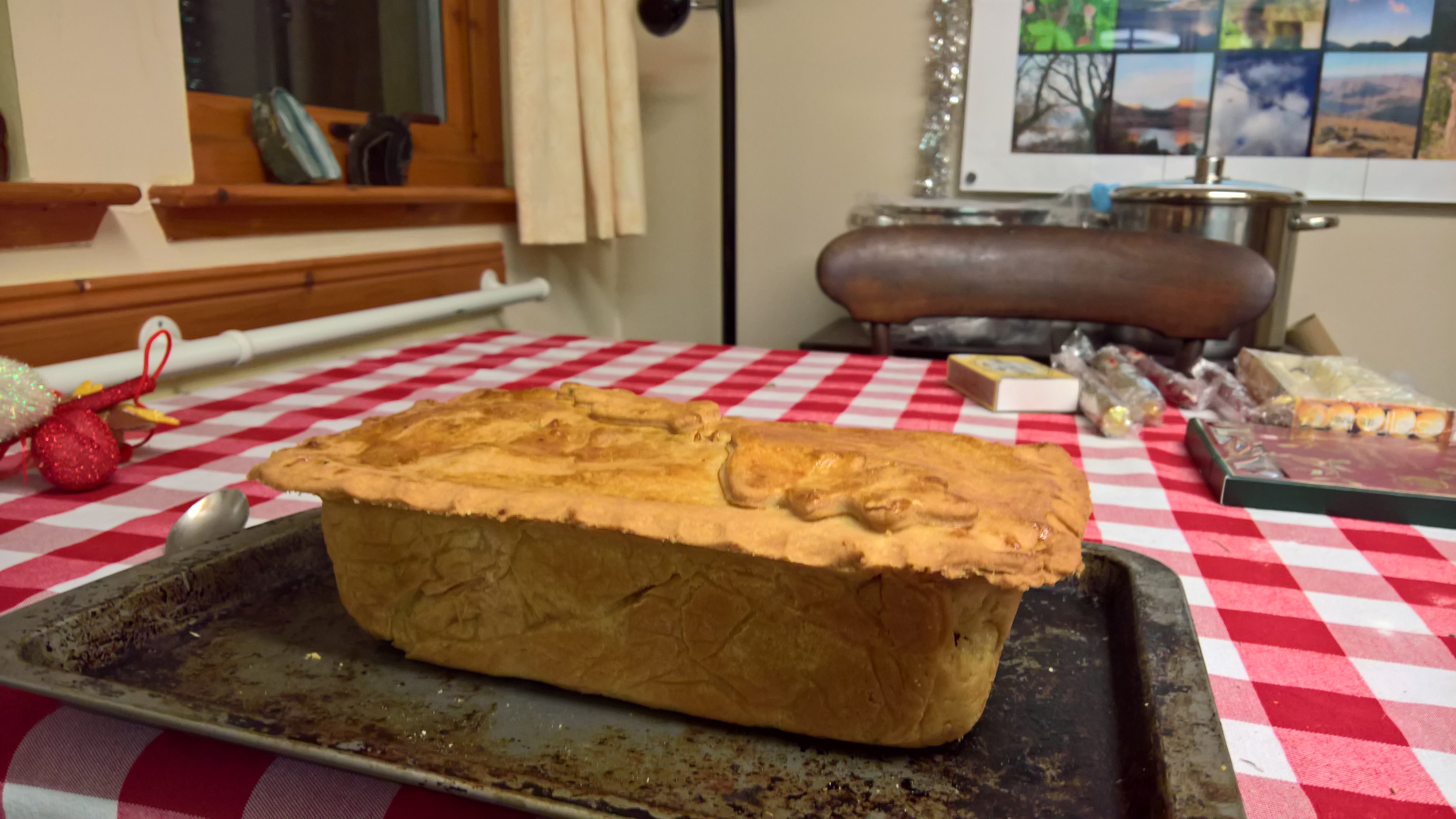 I made this Christmas Pie yesterday – it is Paul Hollywood’s “Leftovers Pie” which is supposed to be for using up any leftover turkey, stuffing, sausages etc. This was done in advance though because I am very concerned about storm Barbara which is supposed to hit us over the festive period – and specifically about the possibility that we will have a power outage on Christmas day. At least this will give us something nice to eat if this does happen.