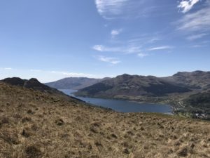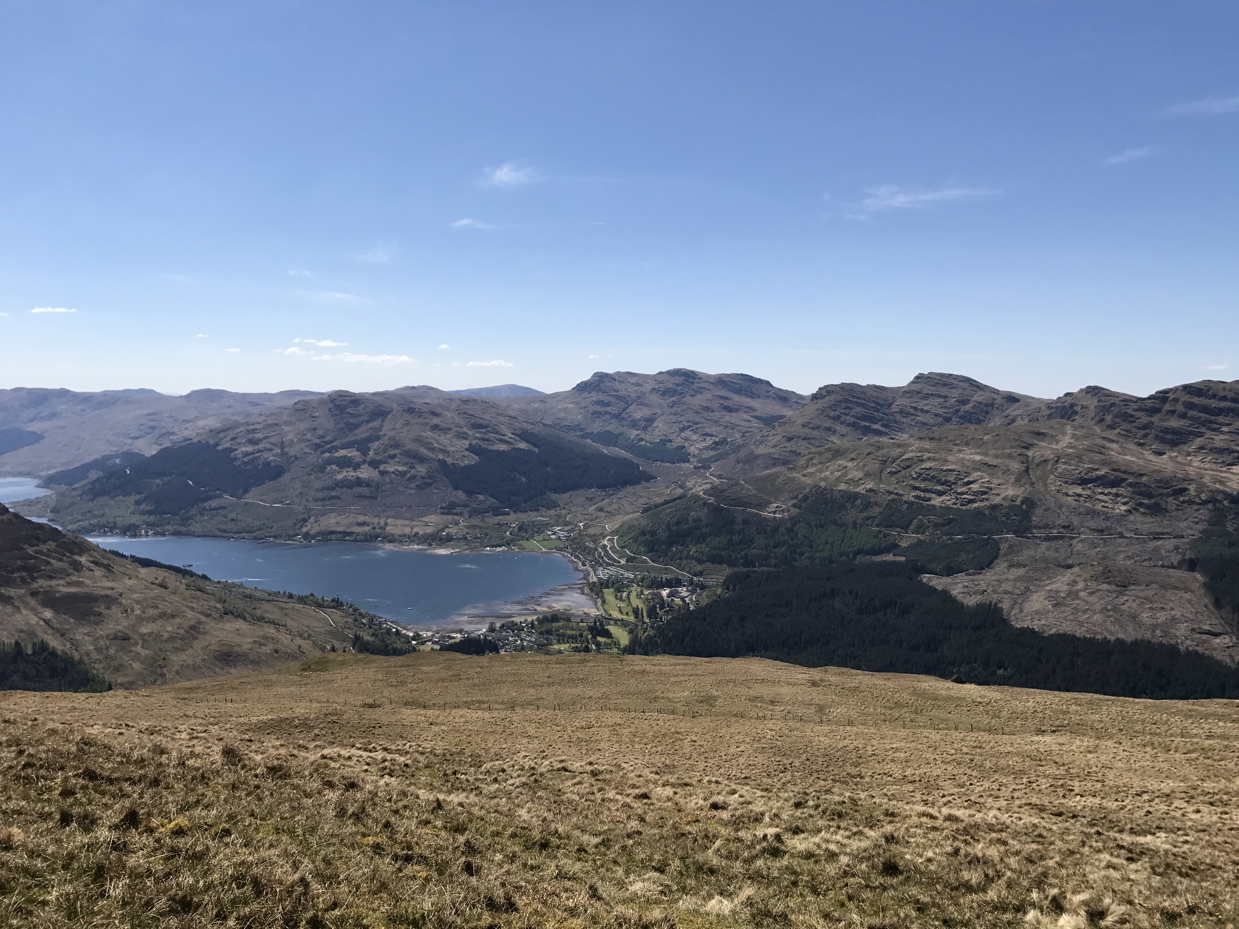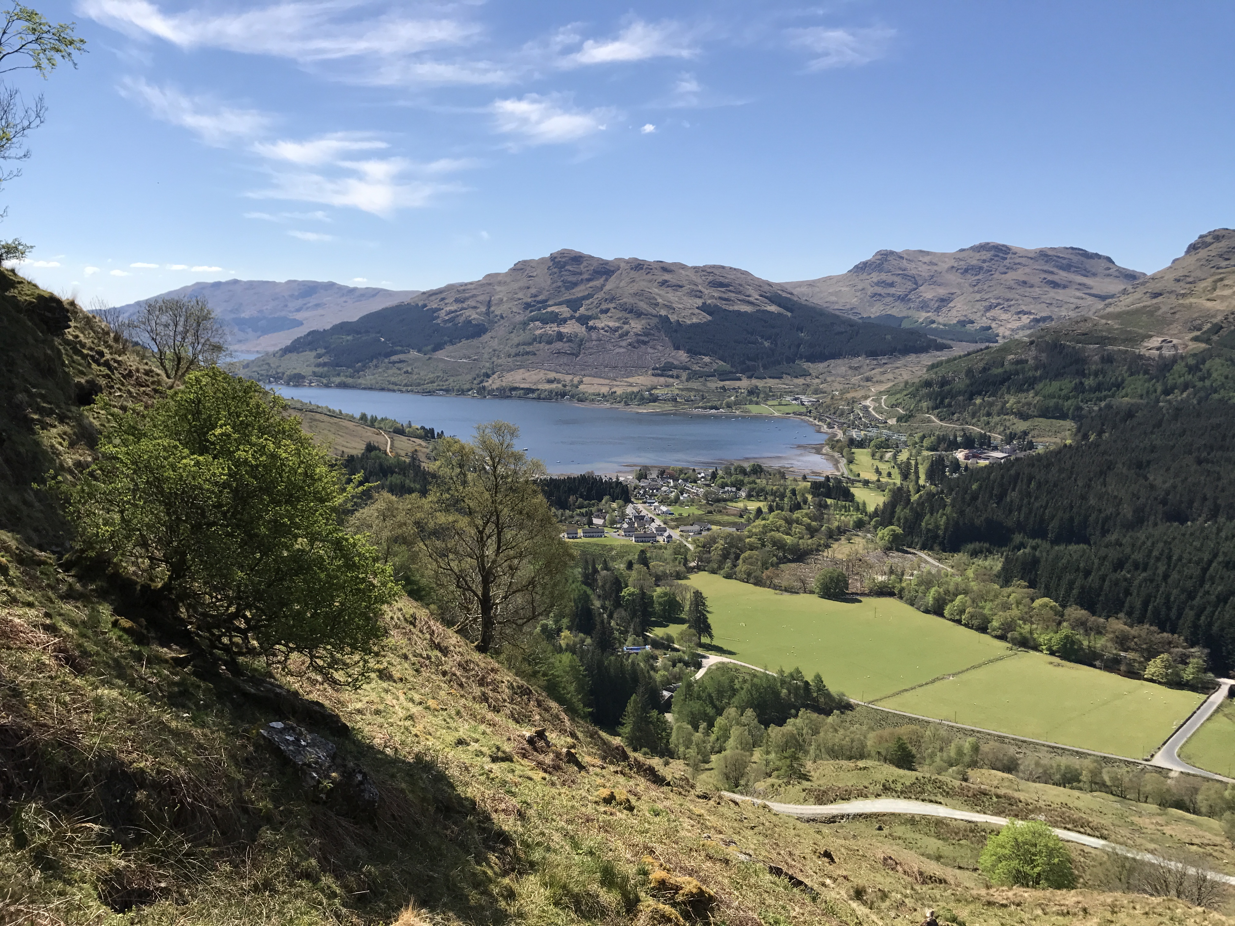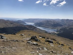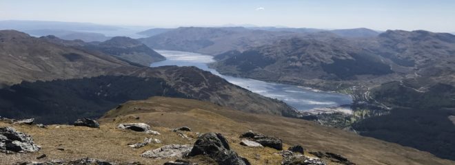 The standard way to climb Ben Donich is from the Rest and be Thankful. This has the advantage of a path (and takes about 300m off the ascent) – but the distinct disadvantage from our point of view that it means having to get the car out (or a very long walk in) to climb a mountain which is quite literally in our back garden. A couple of years back, R and I did climb it straight from home by walking up towards the top end of the new hydro station and ascending past the Rock of the Britons, but this was very hard going due to the forestry operations there having the ground in a disgracefully impassible state. So I have been trying to find another way up – with the obvious route being off the Tam A’Ceulig path which runs parallel to our back garden.