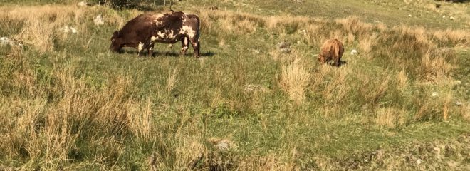 I was a bit concerned about Billy the bull and his little family, as we heard loud (very loud) mooing the other morning – and subsequent to that they were gone out of their usual field. All is well, however, as they have just been moved up the hill a bit and are now enjoying the fresh green grass up there.