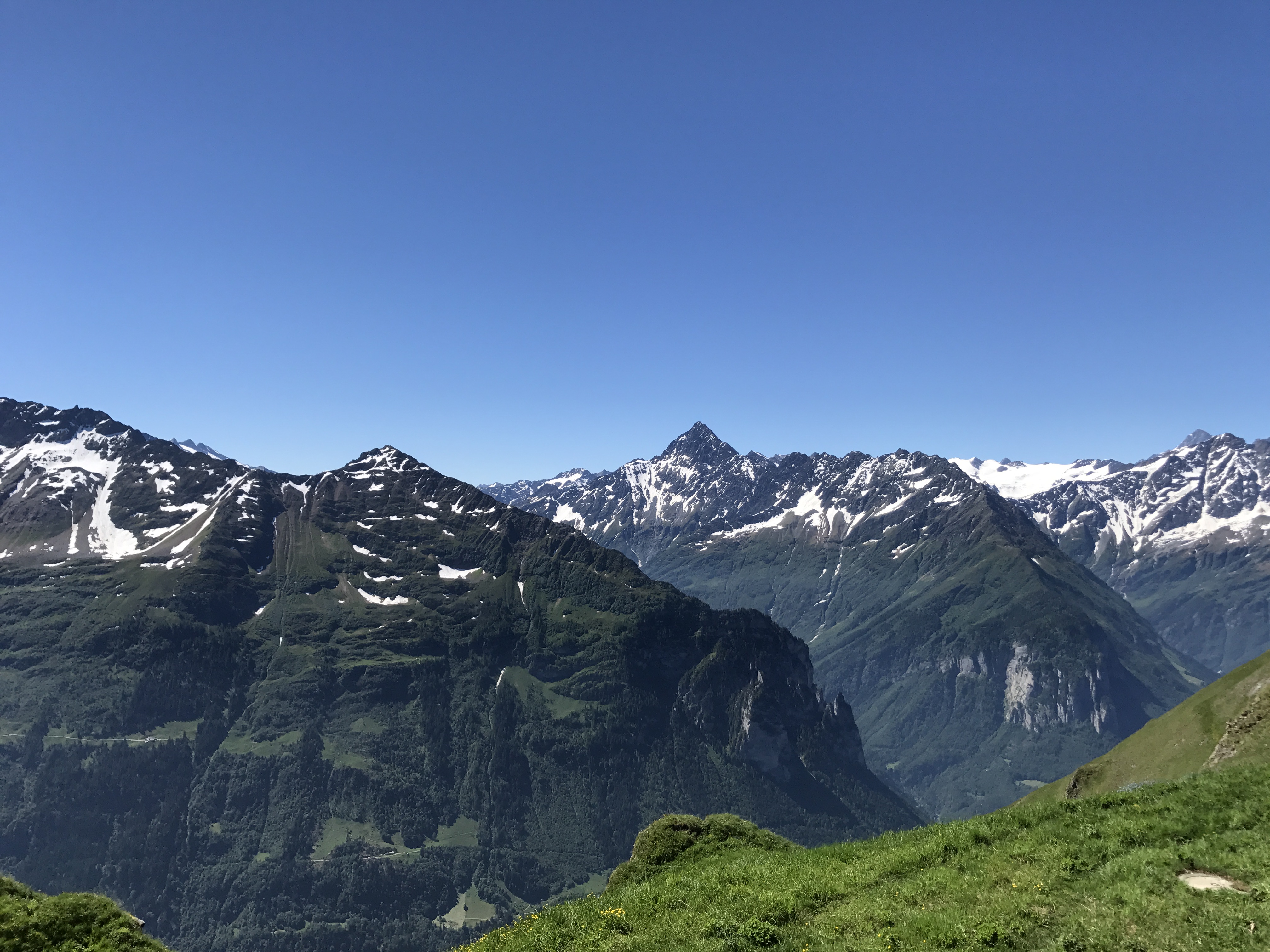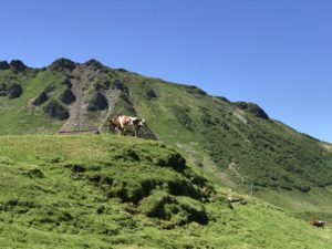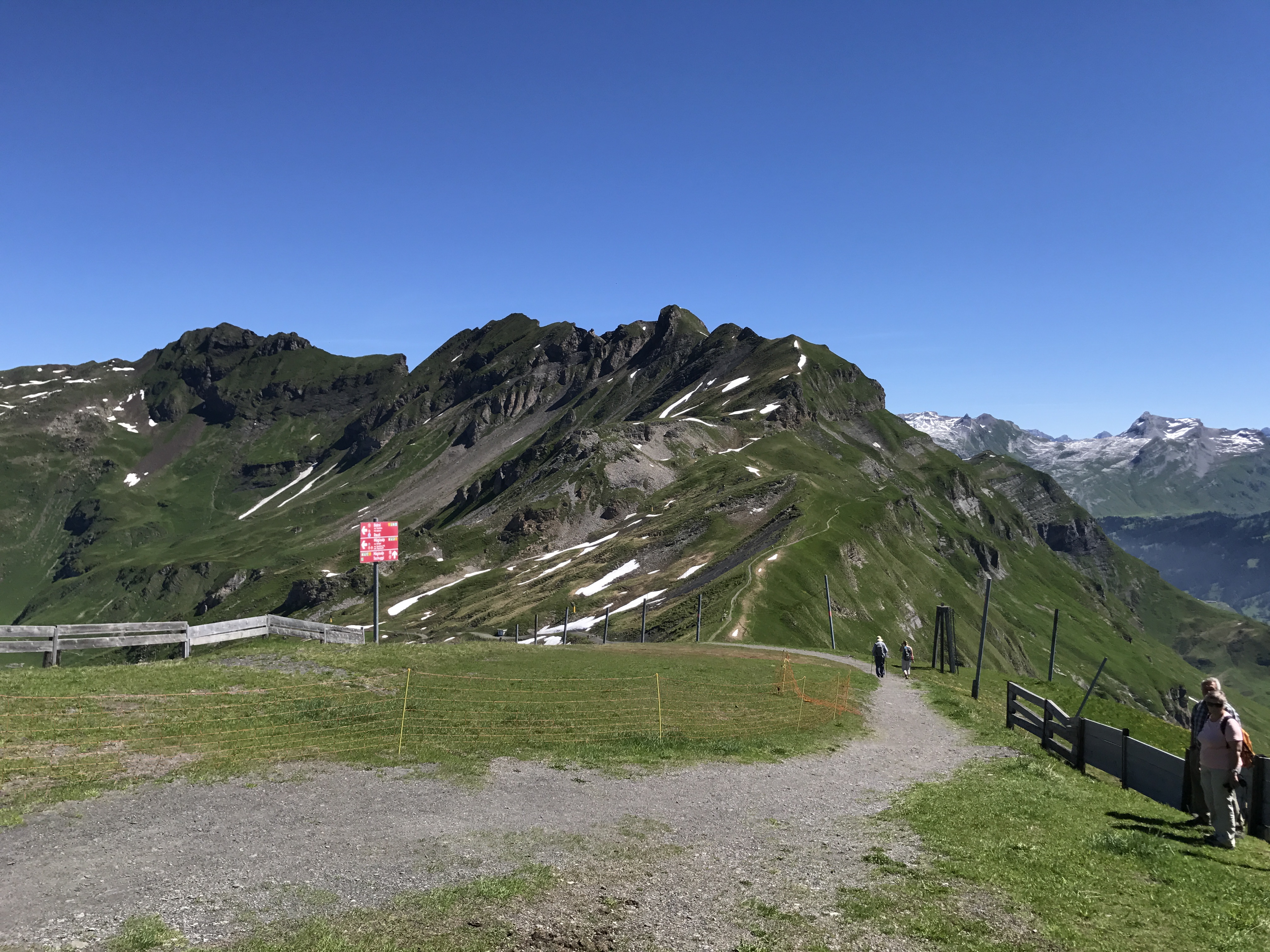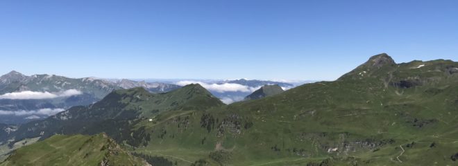 We took three cable cars up to the top of the Hasilberg this morning, and walked all the way back to our apartment (we are staying in a very swanky place we got off AirBnB). This took about five hours, but included lots of stops to admire the scenery and two longer pauses for refreshments. The weather is fantastic – though rather too hot for R, who is flagging a bit, and I think we will need to stick to downhill walks this week.