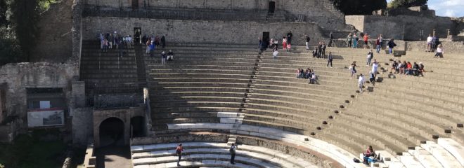 Just about everyone got out at Pompeii which was stuffed with tour groups and touts. It was quite atmospheric but nothing like as good as Ostia or Herculaneum. Also there was nowhere to have anything to eat or drink without standing in Jupiter’s own queue to get it.