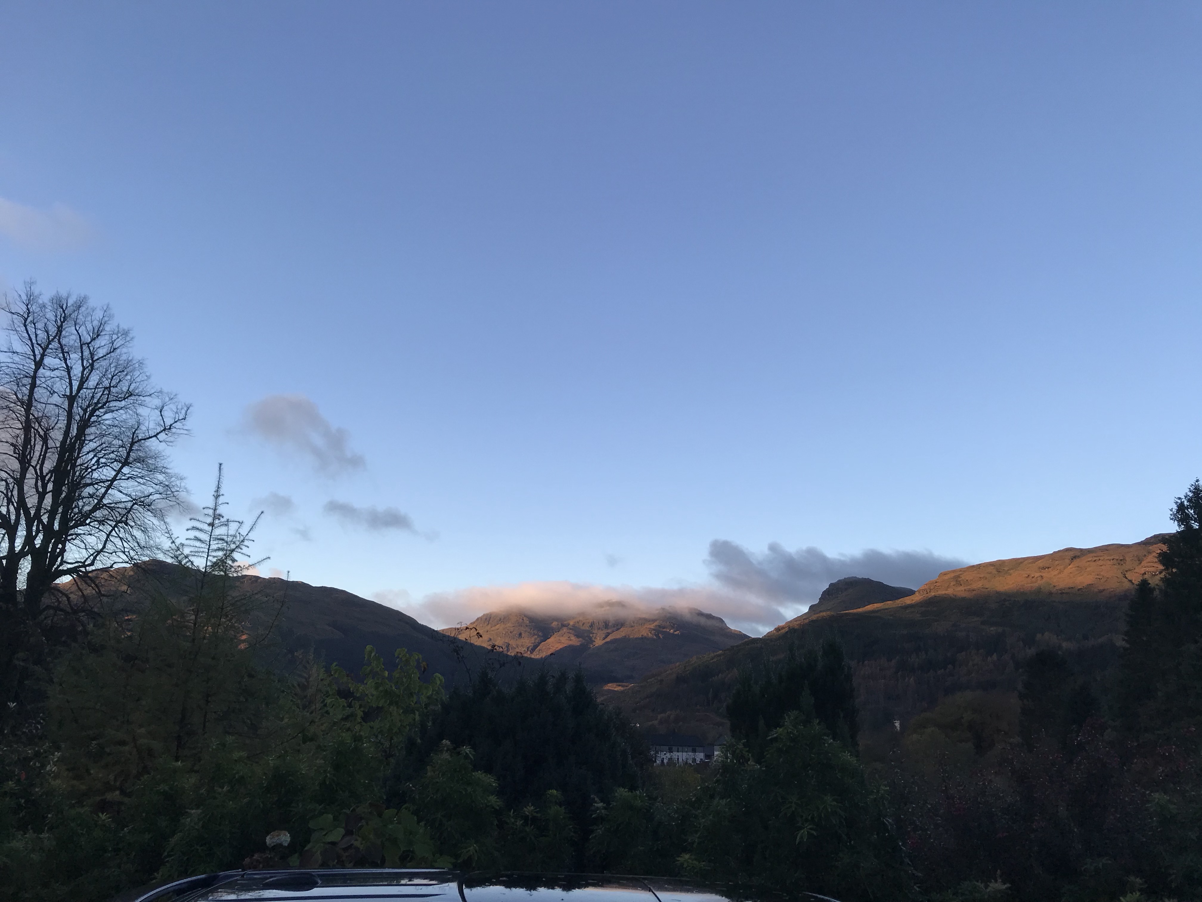 First snow of the year on the mountains within 24 hours of when it appeared last year.