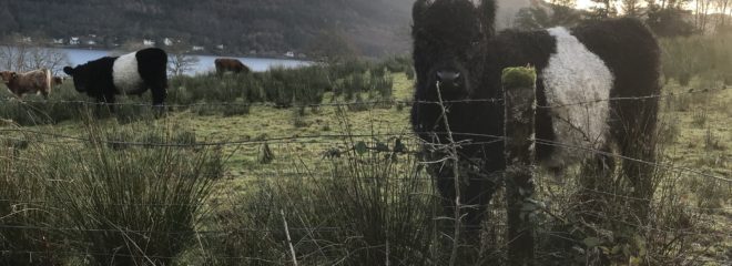 We noticed these gentlemen in a field near Drimsynie – they are not natives of Argyll – unless I miss my guess they are belted Galloways from ‘down south’.