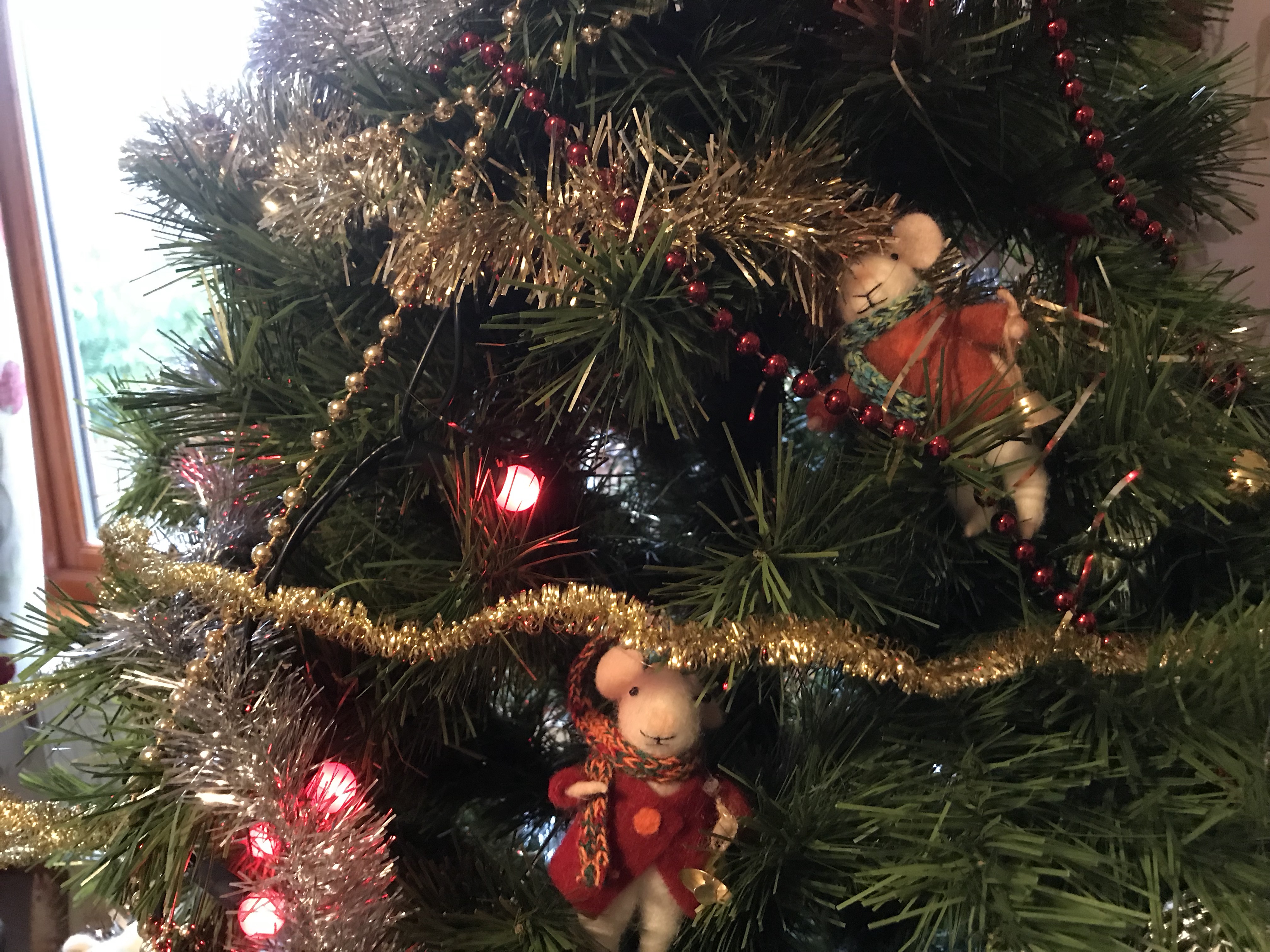Here is the tree with some little mice and snowmen which my Mum bought me last year. I think I am a sad sentimental individual because I had put the snowman/snowwoman on opposite sides of the tree and then had the idea that they would be missing each other so I moved them to sit on the same branch.