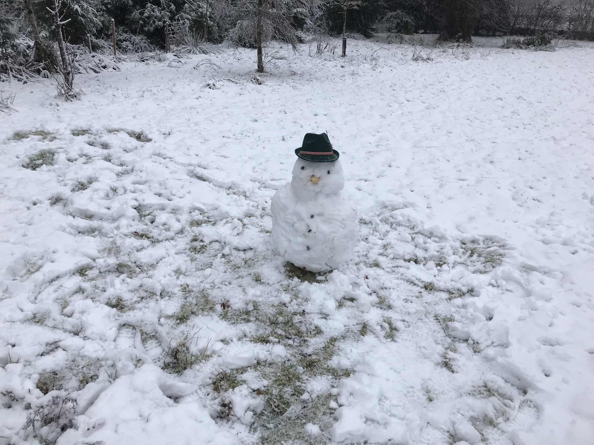 Then we built a snowman which is wearing the Bavarian Hat from the German party N did for us on Christmas Eve. I did bring the hat in afterwards as I now have it hanging on the wall and didn’t want it to get wet.