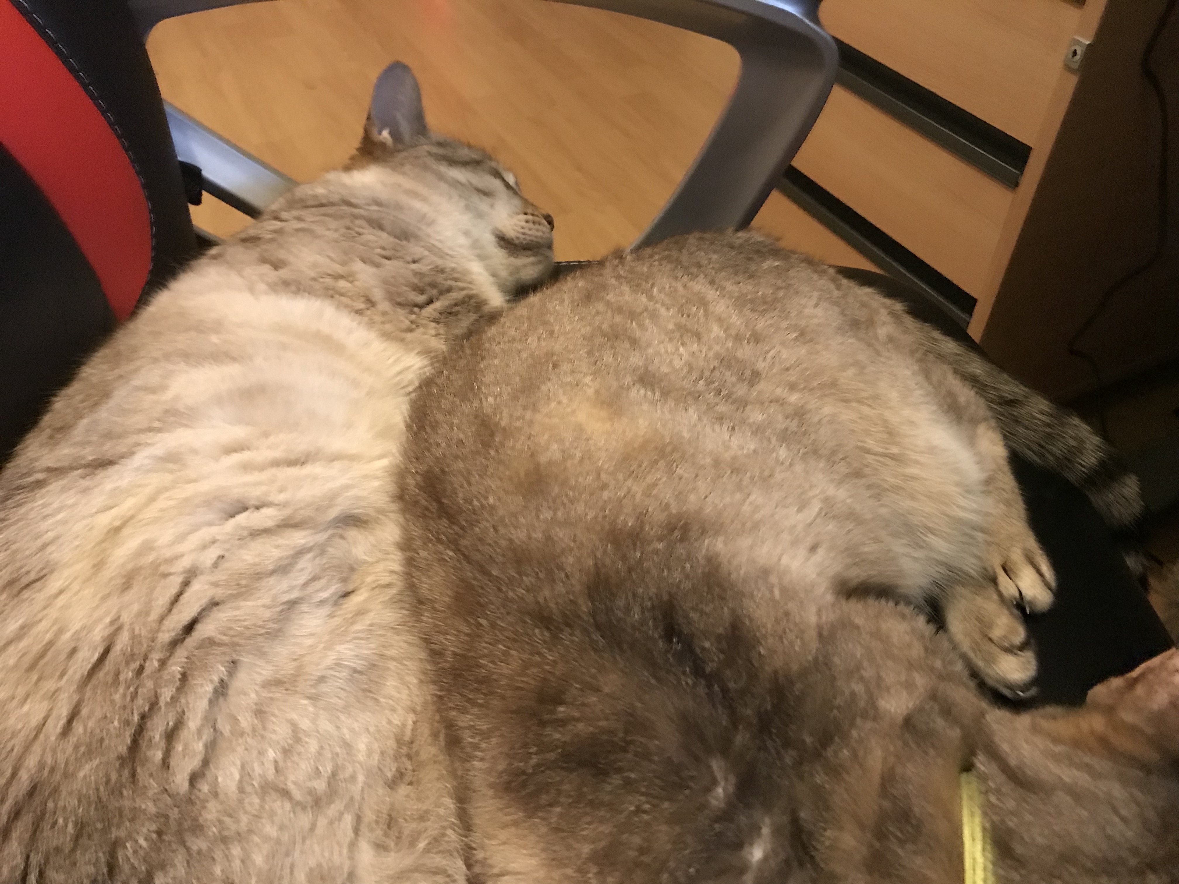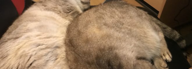 Poor Schrodi was on the chair first and then Tora invaded it – this is after they have been fighting off and on for weeks as the weather has been so awful they don’t want to go outside.