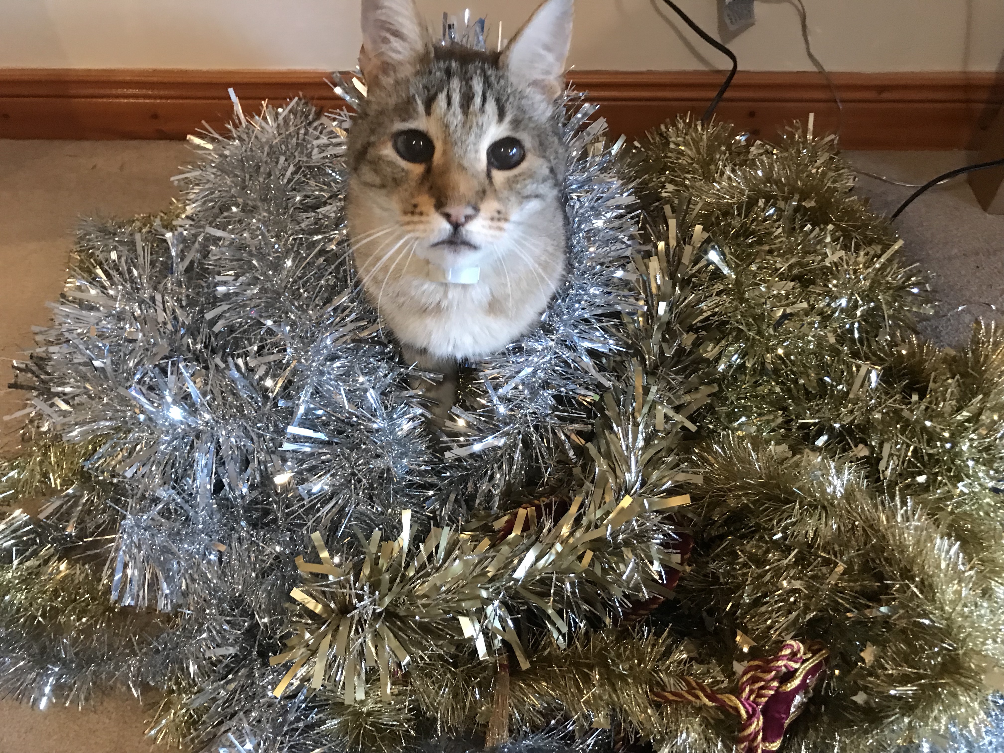 This is Tora assisting with taking down the tinsel.
