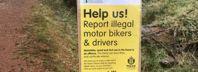 Thank goodness that the Forestry Commission have posted some notices on the Donich Circular path forbidding the use of motor vehicles. Not only have there been trail bikes seen going up there – but the Dutch army actually took an armoured car up there. They have been told by the FC to repair the path which actually took a lot of damage from their activities – to the point that it was a sea of mud for days.