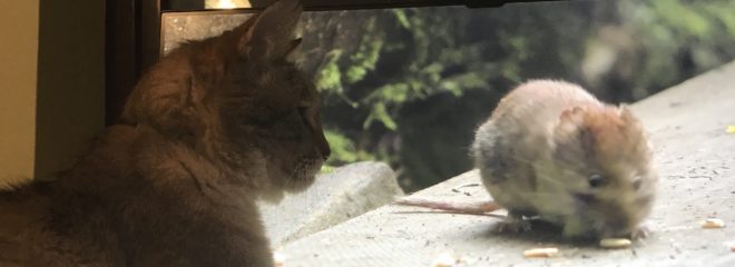 This is all because in the rather cold and raw winter weather, he is not too keen on going out in the garden to interact with the real genuine birds and squirrels.