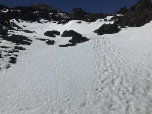 To say this was a challenge was the understatement of the century. I did not realize how hard going the altitude would make it, and I was soon gasping for breath. Poor R, who reacted much better to the height than I did (strangely enough) ended up carrying my pack and giving me his walking pole. By the time we were nearly at the summit I was having to stop every 20m to get my breath back. There was also thick snow which made the going very difficult.