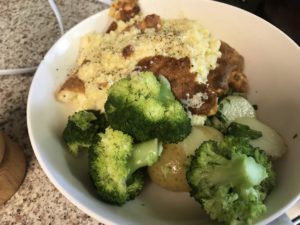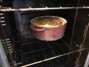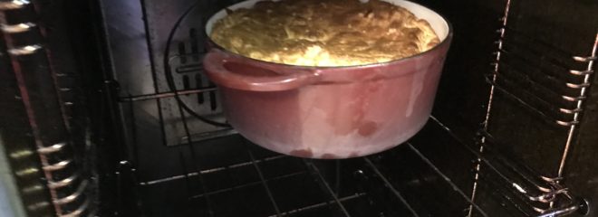 I don’t want to tantalize her too much – but last night we had her all time favourite. A cheese soufflĂ© with jersey royal potatoes and broccoli.