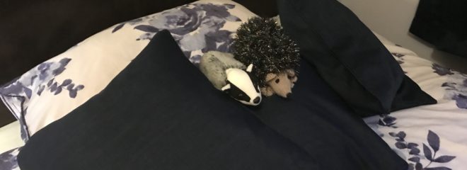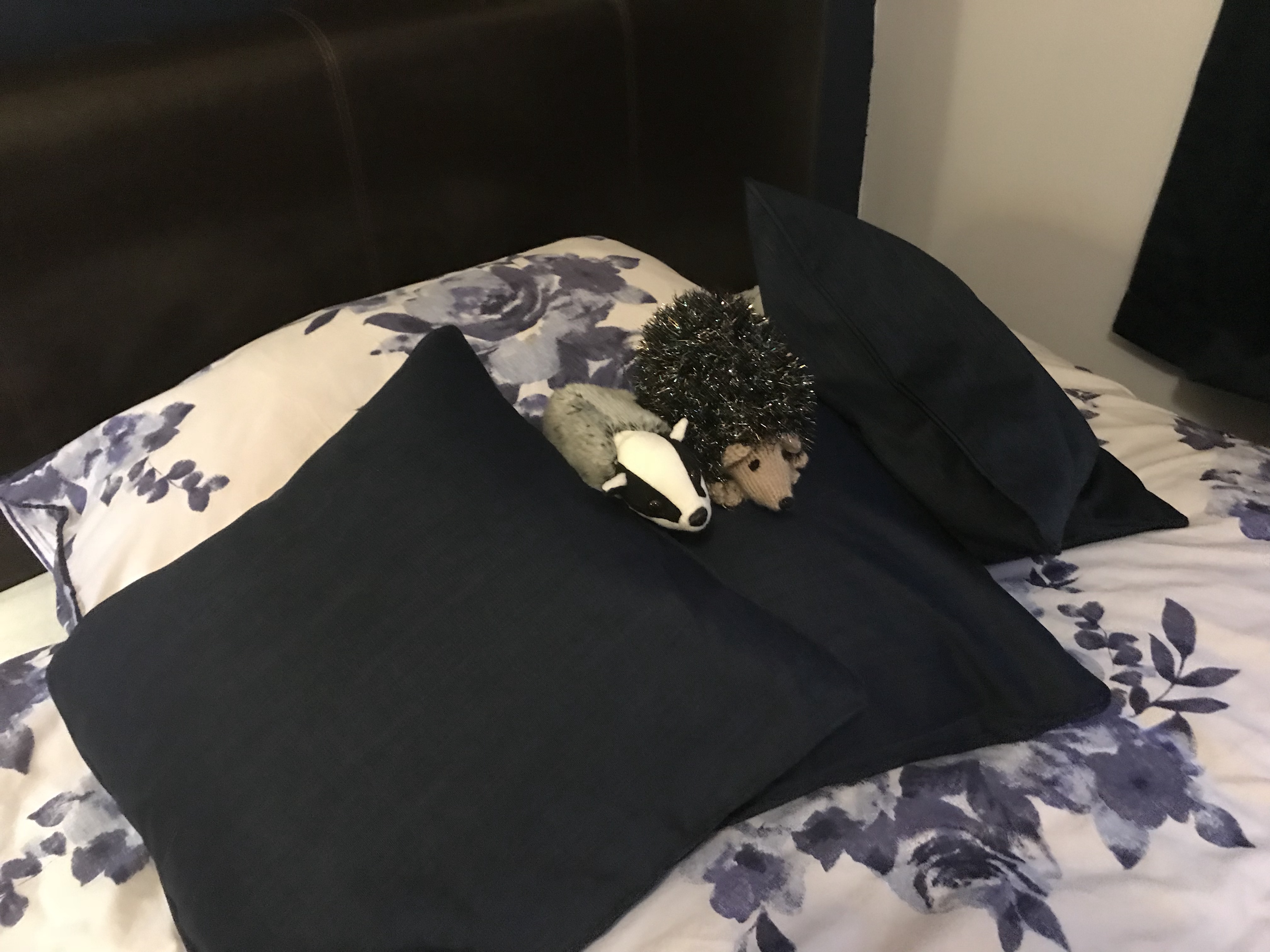 Anyway two of my plush friends, Mr Prickles and Stripe have been sitting together on the bed