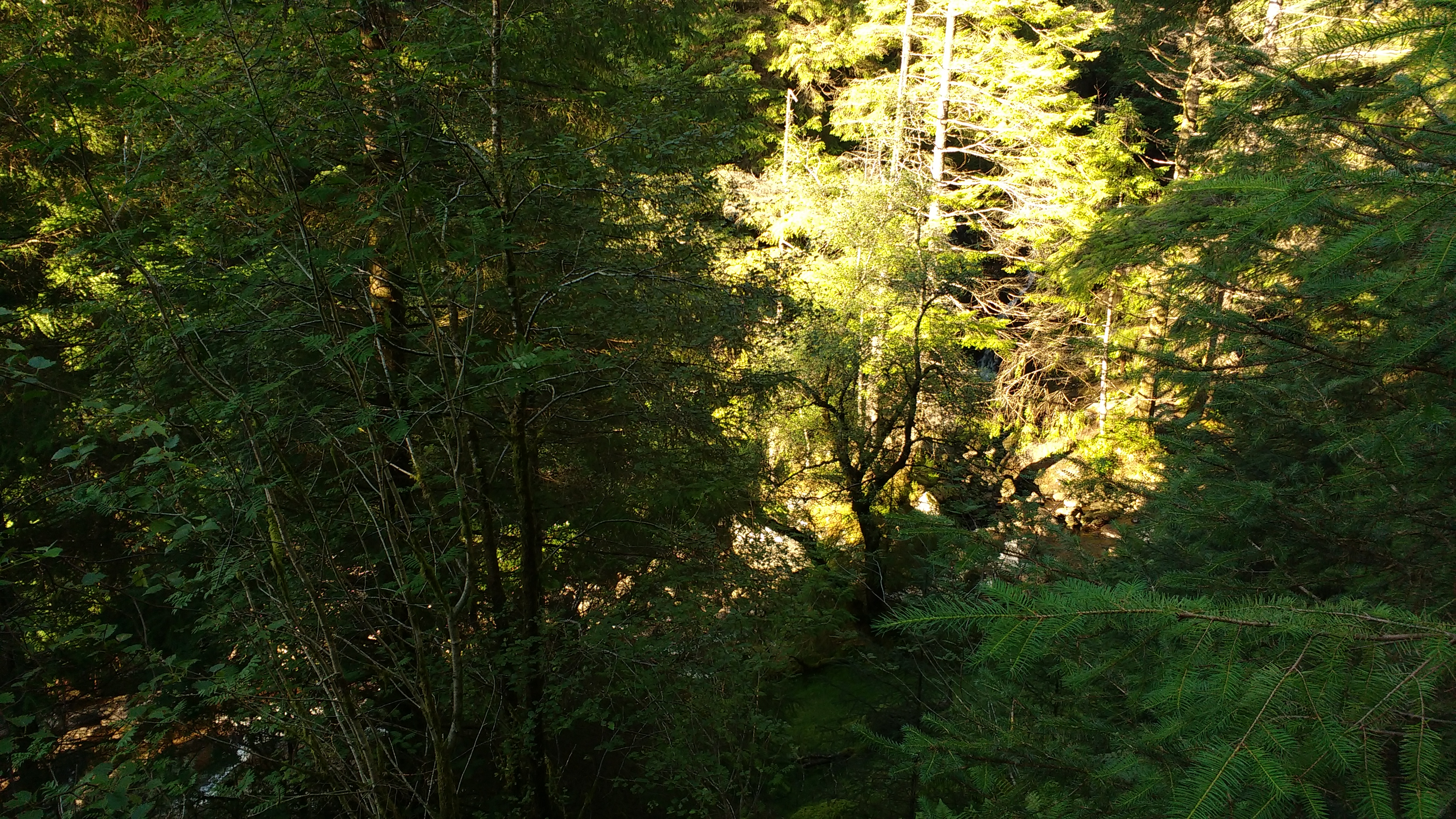 I went for a swim in Gollum’s pool. It is the first time I have done this in the middle of the day when the sun was on the water, and looking up through the waterfall, every drop was turned into a miniature rainbow.