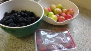 I remember brambling as a child. We would go out as a family and pick as much as 40lb in a day. Then my Dad would make them into jelly – contrary to best practice he would always squeeze the bag, which turned his hands bright indelible purple. He was an Excise officer and had to go and visit traders – so goodness knows what they thought of him. Then on the apple front, a friend of mine had a huge crab apple tree in their garden, and as they never used their fruit, Dad and I would go and collect it for jelly. Crab apples actually make much better jelly than the apples I have in my garden, but I refuse to let the fruit go to waste, unlike a lot of the people in this area.