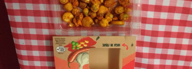 I bought some spicy dried peas for myself at the weekend. As I didn’t eat them immediately, R purloined them and took them off to his office.