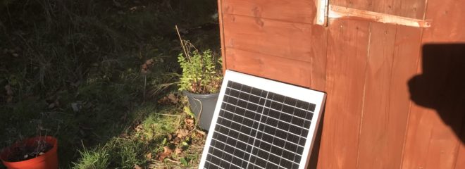 This is our new solar panel which we are using to power lights for our shed. The old greenhouse on the same site had wired power from the house, but when we got rid of it we never got the new shed we replaced it with connected up. I had a feeling that getting the electrician in to do this would cost a fortune, so we had a go with the solar panel instead.