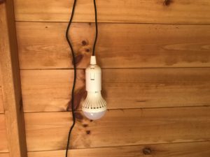 Outside we have the panel facing south. It then powers up to four lights inside off a 12V battery which took about 24 hours to charge fully for the first time.