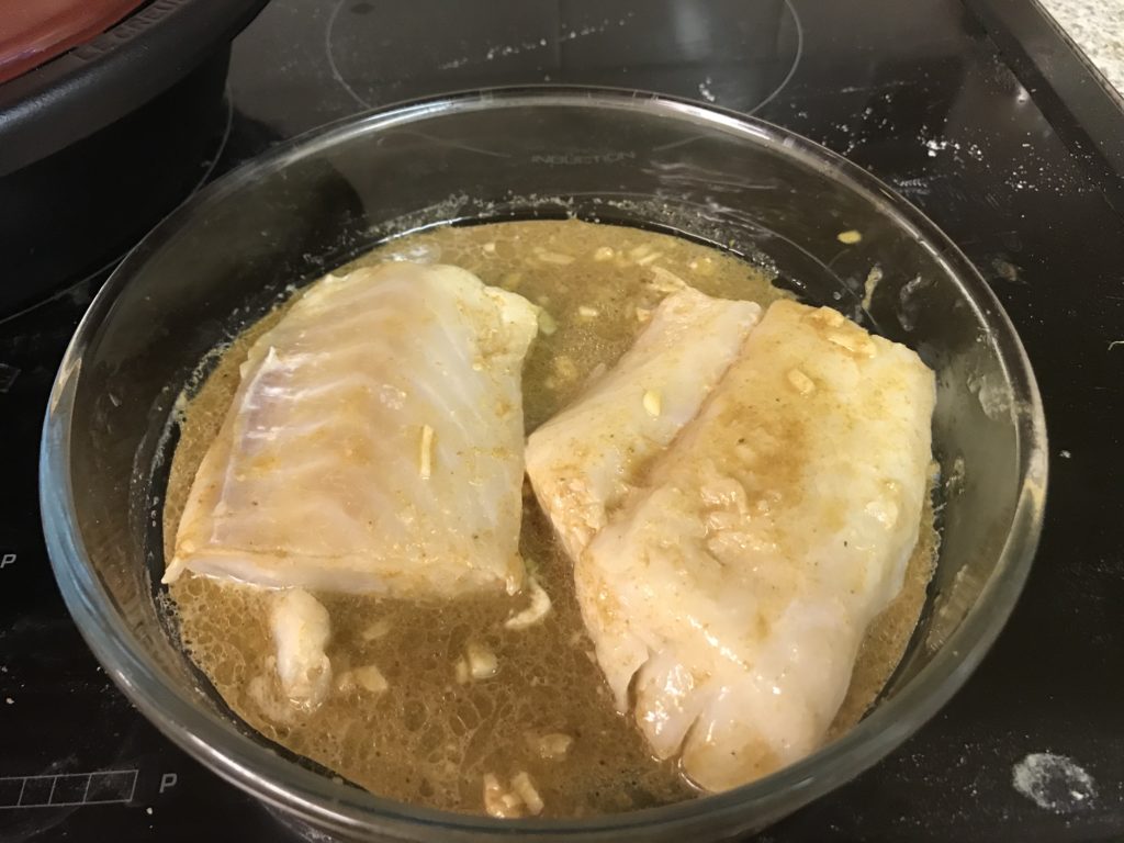Marinated the cod loin in garlic, lemon and spices