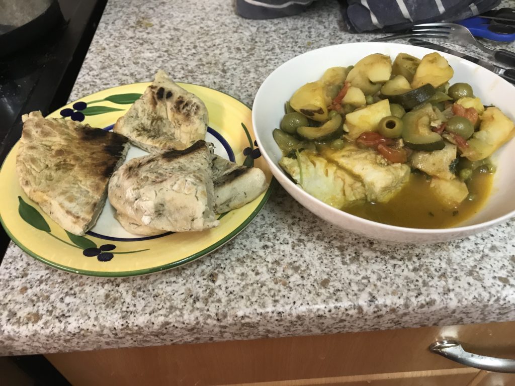 The finished article served with homemade garlic and coriander flatbreads.