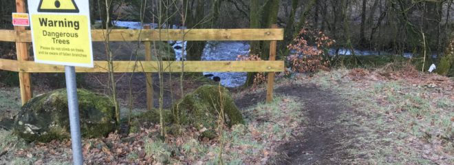 You have to laugh. The powers that be put this stupid sign up over six months ago. I’m not sure why the trees here are any more or less dangerous than anywhere else you could wander to in the woods – unless there are some ents in there that we don’t know about.
