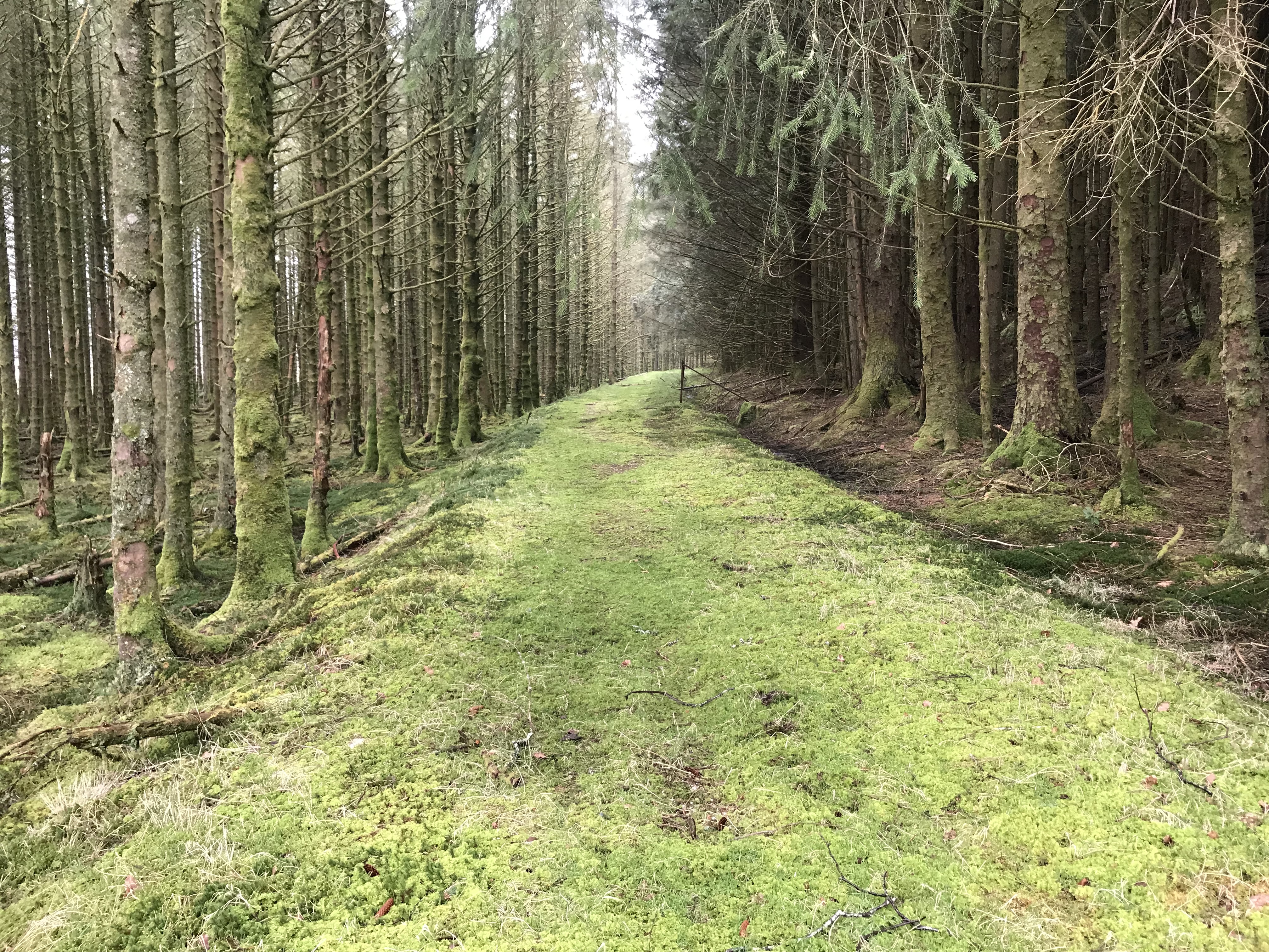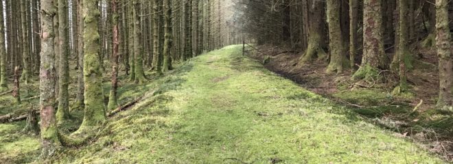 My friend J and I are in training for our Camino now (or at least he is when I can induce him to come out walking). On Friday we did one of my favourite walks. We went up behind the holiday village at Drimsynie, and climbed up to a Forestry road high on the hillside. This winds its way through the hills and eventually comes out at Drimsynie Beg. In the past when R and I have done this walk we have turned left onto the main road, walked along it for a few hundred yards, and then finished up by climbing up the Tom A’Cluishish which eventually takes us back to the entrance to the hydro road. But R has been telling me how he completed it by walking down the old Coach Road by the side of the river (I was away at the time).