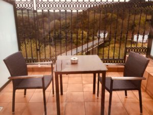 Eventually when we were close to Portmarin, the path suddenly turned in to a rocky scramble and J had to crawl down on his bum.