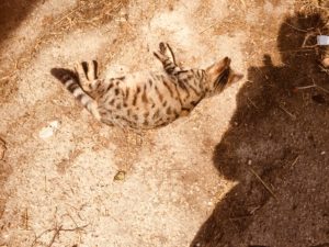Mid-afternoon we met two nice cats. Their owner told me in Spanish that they were Mum and Daughter. As the tabby was obviously just a big kitten, and Mum was a Siemese, she had obviously been playing with a bit of rough trade.