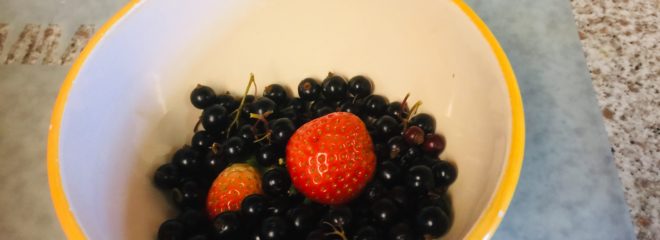 But the blackcurrents and strawberries are doing alright. I made some tartlets today – I had more of them than I should and R tolerated eating one of them (unwillingly).