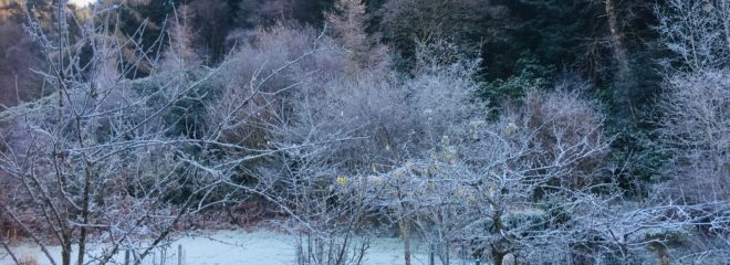 The lawn and the cars did not defrost at all yesterday, and haven’t today either. We had been supposed to be going to see my parents in Rhu today and drop the old carpet off at the tip (sorry “Recycling Centre”) but R has somehow acquired a cold, in spite of having seen no one apart from me all week.