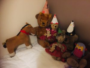 Here he is with the rest of the gang – they have paper hats and Dobbin has two new ribbons.