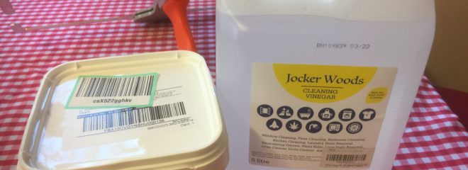 However I have a few tricks up my sleeve which younger people might not know. A few years ago R and I experimented with living a 1940s wartime lifestyle for a few months. So we fed ourselves on the wartime ration (not one single person enjoyed the Woolton pie I made) and tried as far as possible to use the technologies of the time. For cleaning I used bi-carbonate of soda and white vinegar – these were very effective in removing grease and stains. So I bought some and will now be using them to clean my kitchen and bathrooms.