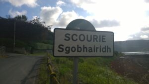 So I’ve tried to start learning it from a book I bought – rather optimistically called “Learn Gaelic in 12 weeks” twice now. I had no success – it is not a particularly easy language for English speakers and in particular the relationship between spelling and pronunciation is rather odd. You can see this from the dual language road signs when you realize that many place names have been directly anglicized from the Gaelic originals, with radically different spellings. For example:-
