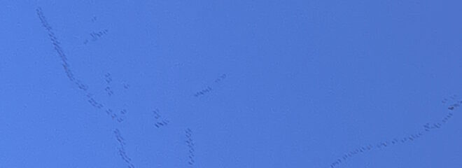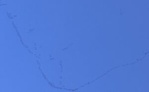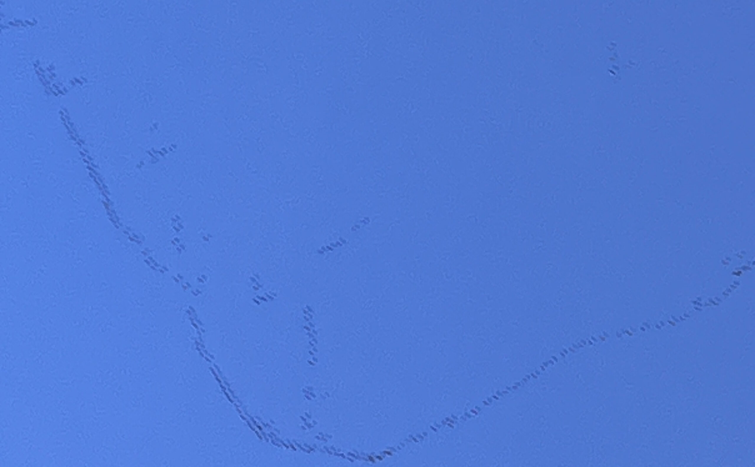 R and I were walking down the coach road this morning when we heard a loud honking from above. R managed to snap them although it is not a great photo as they were too high.