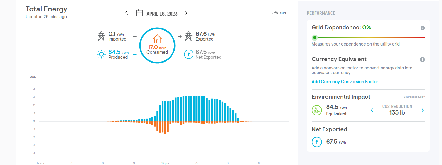 The solar is doing amazingly. We are basically not using the grid at all at the moment – and this is including running all the big appliances.