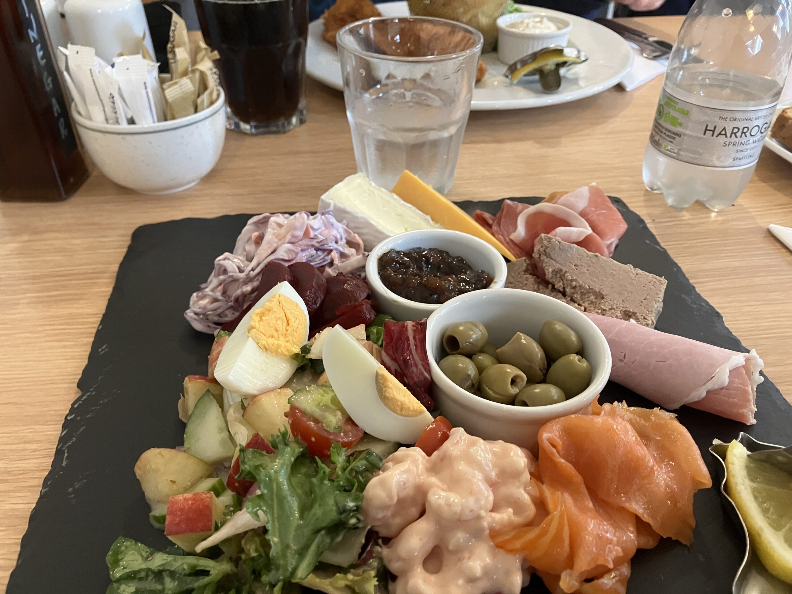 Afterwards we went to the “Old Schoolhouse” restaurant for lunch. I had a sensational selection platter, and true to form, R had fish and chips.